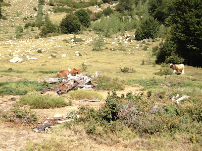 Llegamos sin mucho esfuerzo a la estación de esquí de Campanelle. Tan sólo cuatro horas y media de camino, pero un descanso necesario después de la etapa, corta pero muy intensa, del día anterior. Supuestamente en Campanelle hay un refugio del Parque, pero la realidad es que está abandonado y sin cuidar. Supuestamente la llave la tienen en el albergue de la estación, pero cuando fui a preguntar me dijeron que lo tenían "cerrado". Dado que las puertas abiertas y el techo está en condiciones podría servir como última opción, aunque habría que tener cuidado con los animales que puedan entrar a lo largo de la noche.